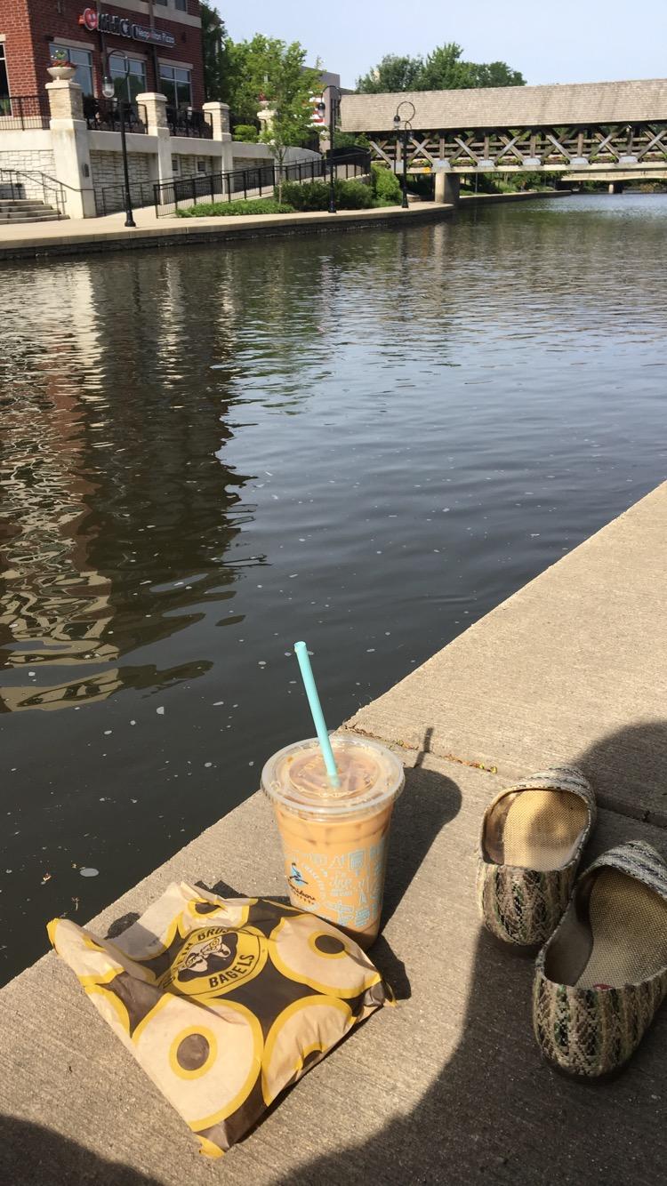 Today as I was sitting by the water, enjoying my Einstein bagel and cold brew coffee, I found myself staring at the movement of the water, paying attention to the warmth on my shoulders, breathing in the beauty of an especially peaceful morning. It felt good to sit, not be rushed and have the time to sit with my thoughts.